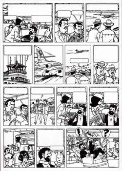 nous voir, nous lui avons présenté cette page comme étant la première d'un tout nouveau récit. Enthousiaste, il l'a abondamment photographié et l'article a été publié, en Suisse dans le magazine ''L'illustré'' de Lausanne, en décembre 1965 avec ce fameux document en vedette. Lorsqu’Hergé a pris connaissance de ce fait il a paru surpris : au début n'a rien dit ni