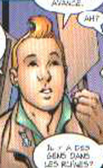 Mais n'oublions pas que la meilleure et la plus étrange parodie de Tintin (à mon avis et je ne suis pas prêt d'en changer !) vient déjà de la BD US avec "Teen Titans Spotlight" numéro 11.chez DC COMICS en 1987 (sur le site of course !!) Pour ces deux pages on ne parlera pas du récit puisqu'il s'agit plus d'un clin d'oeil qu'une véritable parodie sur Tintin. On remarquera l'excellente qualité graphique. Tintin n'est d'ailleurs pas vraiment Tintin. En fait Il s'agit d'un personnage belge qui porte le look Tintin.