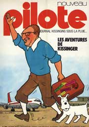 couverture extraordinaire ! Pourtant aucune autre allusion à Tintin ne reviendra dans les 8 pages du dossier BD/analyses sur Kissinger.