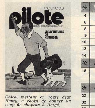 le dire tout net, les apparition de l'univers hergéen dans Pilote furent très rares.