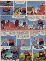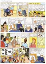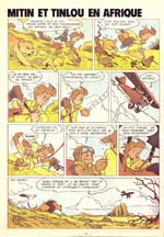 Ted Benoit et Rosinski et Van Hamme ont choisi de refaire, tout en gardant leur style graphique des pages du "Temple du soleil". Binet et Gibrat se palce en parallèle à Tintin au Congo. Le choix de Gibrat est de repousser Tintin, Haddock et Cie bien après les événements du Congo en révélant une affaire de paternités inavouées à l'actif de Tintin !!