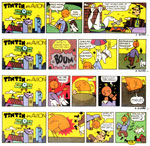 | Trop longue la liste ! Il y a tant de récits de 2 à 4 planches publiés principalement dans les magazines de bandes dessinées ! Alors voilà un superbe bouquet parodique qui nous replonge au coeur des aventures de Tintin : souvenirs, rêves, remakes, suites, etc... . Ces parodies tout à fait officielles et parfaitement légales sont souvent réalisées par des auteurs célèbres comme Gibrat, Binet, Ted Benoit, Rosinski / Van Hamme, etc. On retrouve tous les genres : simple clin d'oeil, parodie hommage, parodie pour adulte, etc...