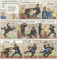 Officiellement c'est en 1993 que le premier album de Tintin en thaïlandais est sorti, Le Crabe aux pinces d'or ( Duang kamol). Ensuite ce sont en 1996 Le secret de la Licorne et Le trésor de Rackham le Rouge (Tng Publishing). Depuis 2004, c'est l'éditeur Nation Egmont qui reprend les sorties : L'île noire et L'oreille cassée. |