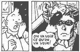 Après une mise en route sans rapport avec la suite du récit, Tintin reçoit ses amis qui viennent lui souhaiter une bonne fête (??). Rapidement le ton monte. Les visiteurs expriment leur agacement devant la célébrité croissante de Tintin. Ils se démasqueront ! Derrière les visages de Lampion, la Castafiore et de Haddock apparaissent de grands personnages de la BD. Tintin finira par être défenestré !